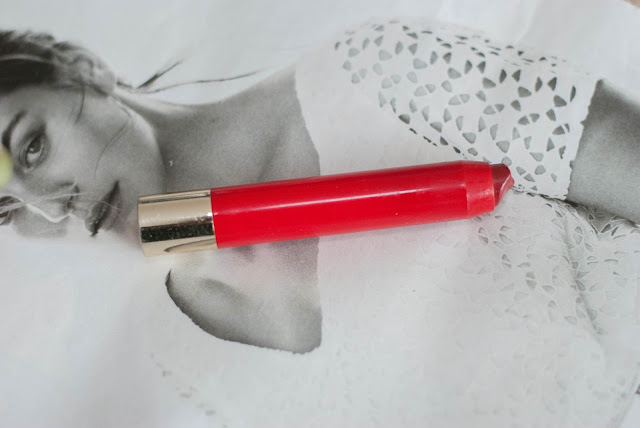 An impulse buy a few years ago, when we decided spontaneously that I would stay at Mr. Locas over night for the first time and I had no makeup with me. So I said I´d go out and get some candles and quickly grabbed a mascara, some powder and this lip crayon on my way.