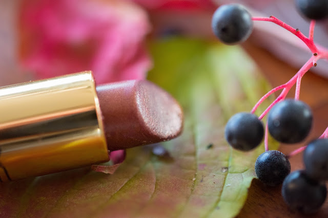 A bronze with a golden sheen that dries down to a slightly berry stain. It looks almost metallic when first applied, but the finish isn’t „Frost“ which I initially thought, but „Cremesheen“.