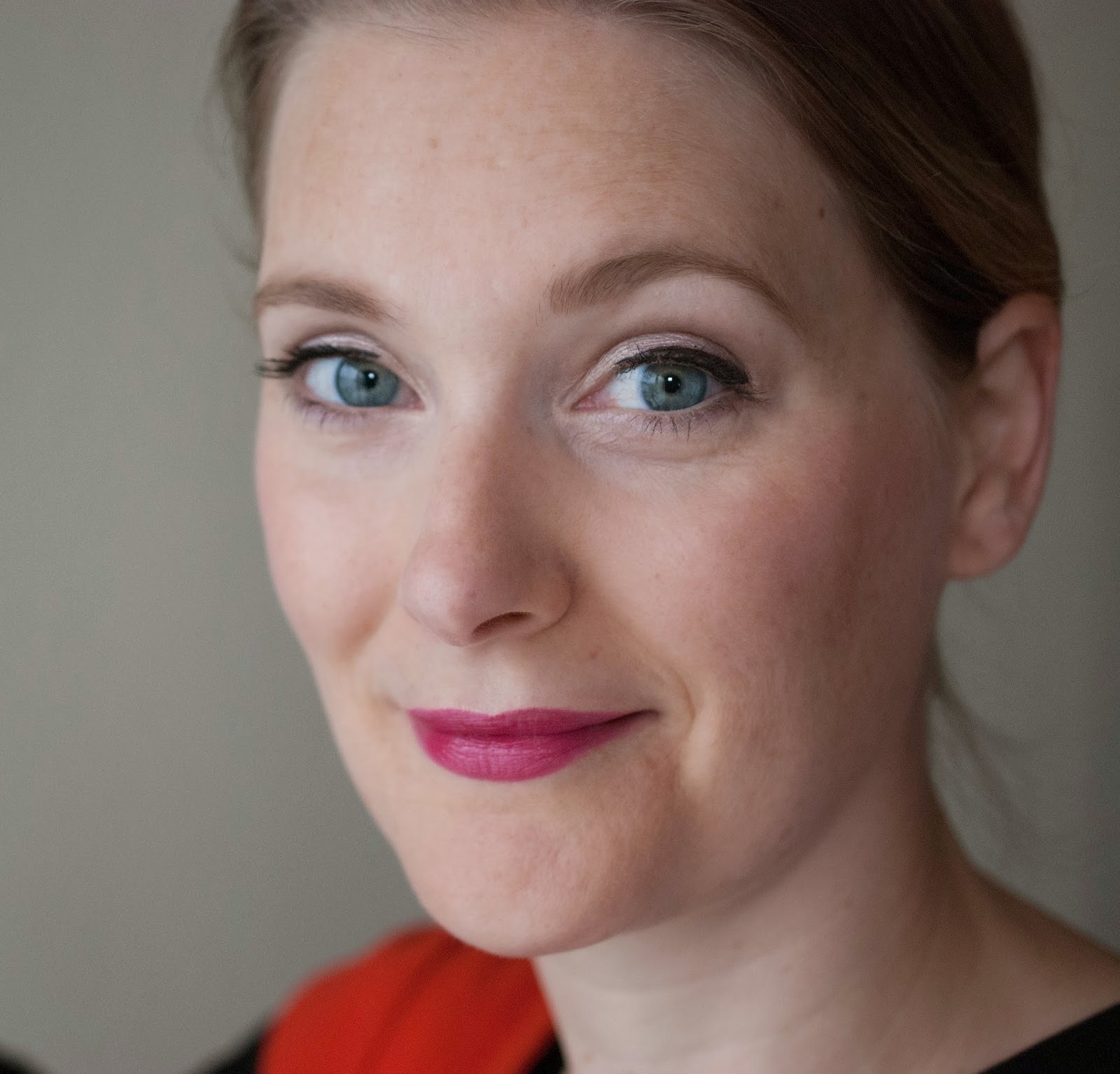 | After-work face wearing Revlons „Cherries in the Snow“ |