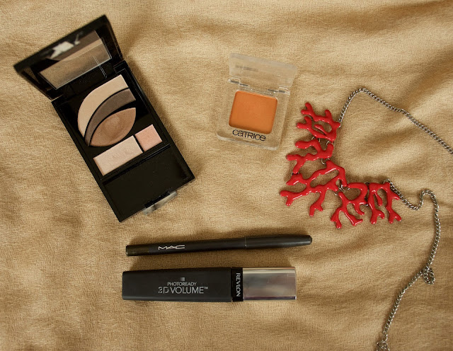 | Revlon Eyeshadowpalette in 505 „Impressionist“, Catrice „Carrots of the Caribbean“, MAC Pearlglide Intense Liner in „Black Line“ and Revlon 3dD Photoready Mascara |