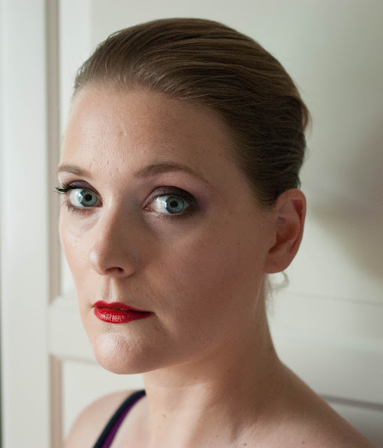 | Purple smokey eyes and a red lip |