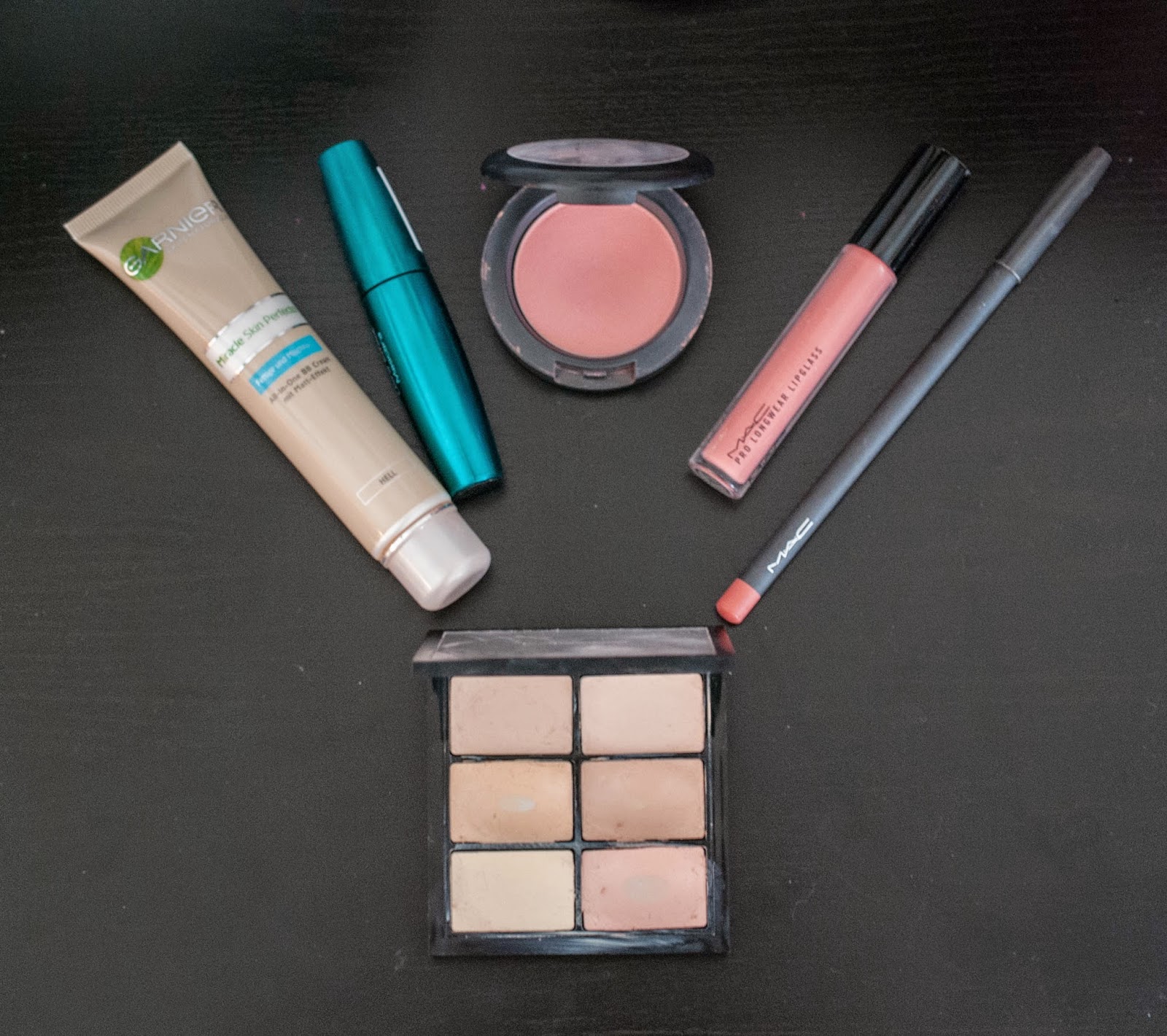 For foundation I used Garnier´s Miracle Skin Perfector All-in-One BB Bream in „Light“ all over the face and applied the „Pale Yellow“ color from MAC´s Conceal and Correct Palette in „Light“ to the center of my face for a highlighted effect.