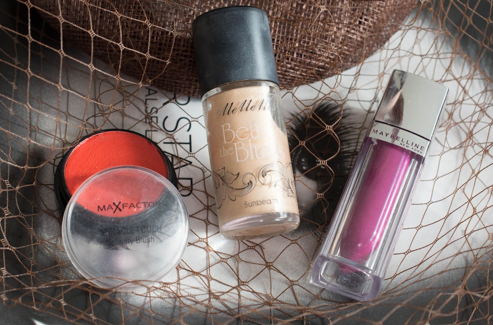 | MaxFactor Blush in „Soft Candy“, MeMeMe Highlighter in „Sunbeam“, Maybelline Color Elixier in „Raspberry Rhapsody“ |