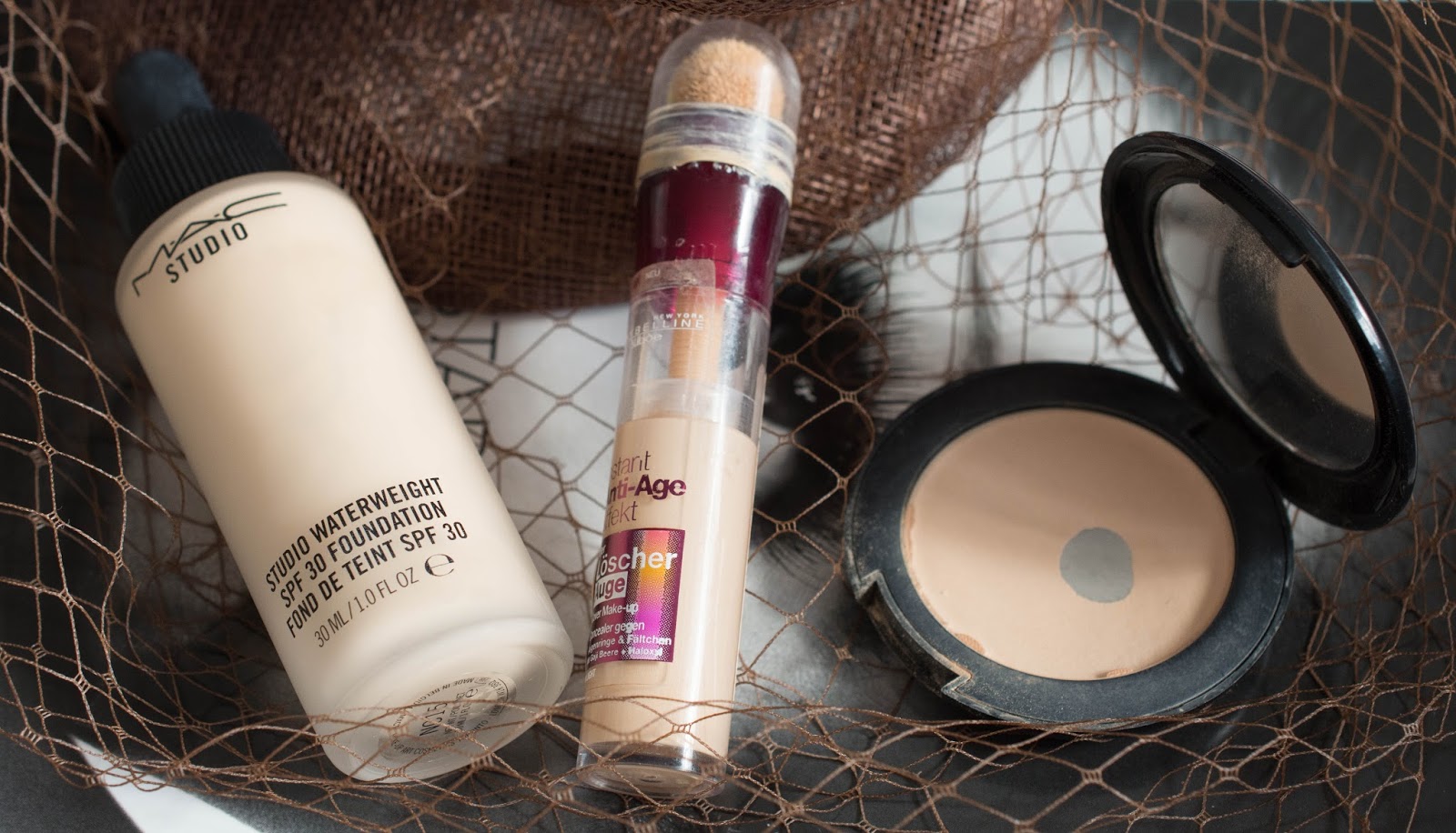 | MAC Waterweight Foundation in NC 15, Maybelline „The Eraser“, IsaDora Velvet Touch Compact Powder in „Soft Mist“ |